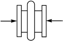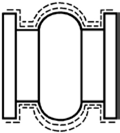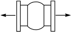 Longitudinal movement shortens face-to-face dimension along axis of expansion joint or flexible coupling